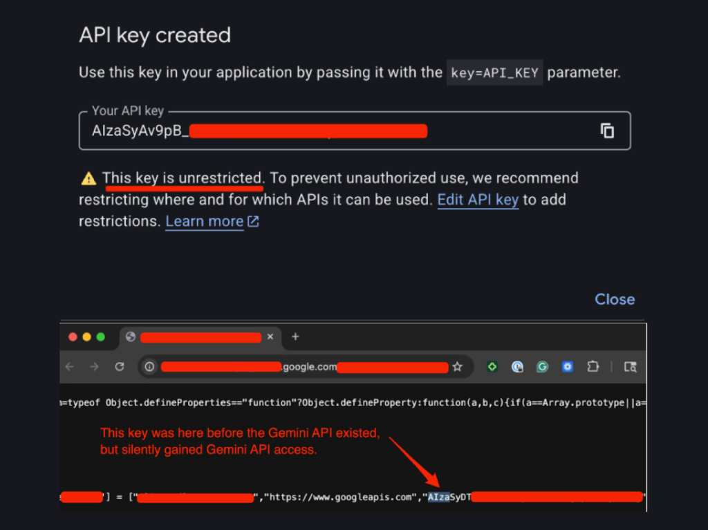 As a result, many API keys originally intended as simple billing identifiers have effectively transformed into credentials capable of accessing advanced AI services.