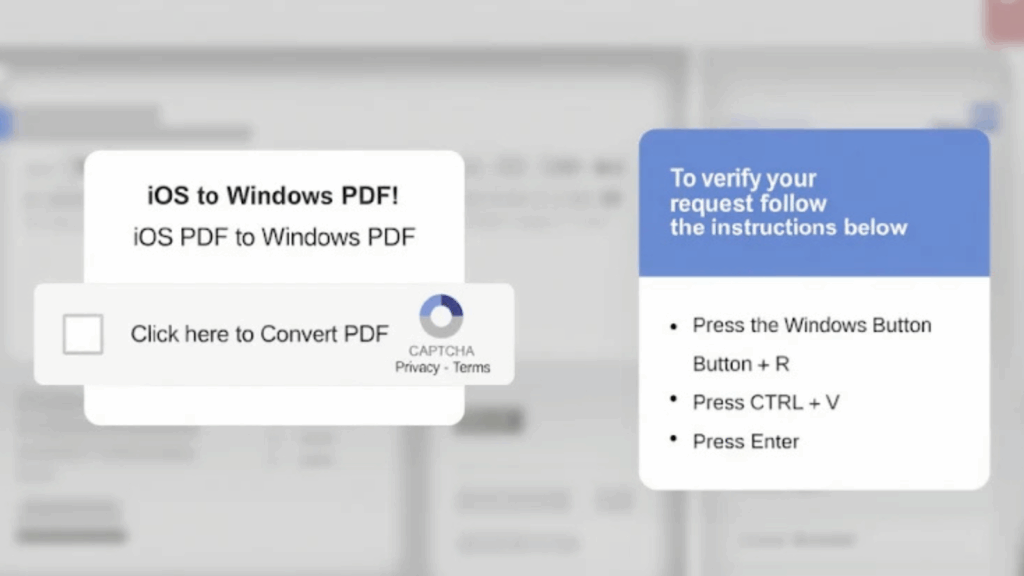 TA585 has used multiple delivery techniques in its campaigns, including phishing emails with U.S. Internal Revenue Service, IRS, themed lures. Victims are directed to a fake PDF that links to a web page using the ClickFix social engineering tactic, which coerces users into running a malicious command in the Windows Run dialog or a PowerShell terminal. That command fetches and runs a next-stage PowerShell script that installs MonsterV2.