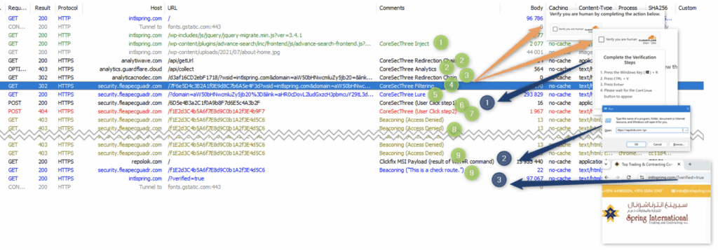 Later waves in April 2025 added malicious JavaScript injections on legitimate websites, which show fake CAPTCHA overlays to trigger ClickFix, again leading to a PowerShell command that delivers the malware. Earlier variants in these campaigns deployed Lumma Stealer, but TA585 switched to MonsterV2 in early 2025. The JavaScript inject and related infrastructure, including intlspring[.]com, have also been tied to Rhadamanthys Stealer distribution.